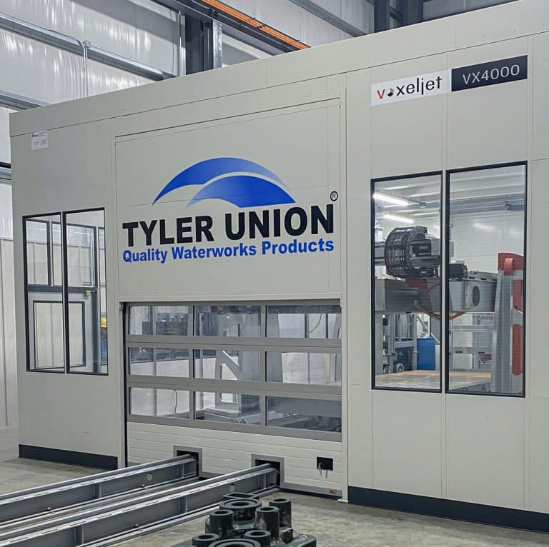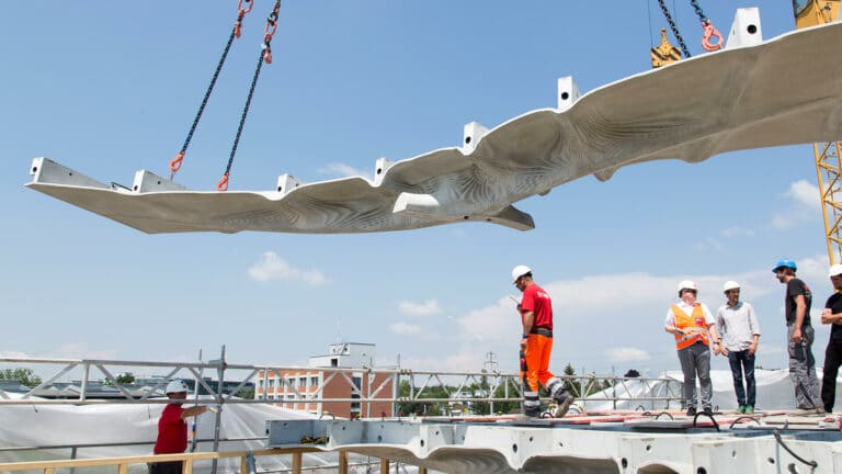 Instead of printing entire buildings, voxeljet’s 3D printing technology enables the production of complex formwork elements for concrete casting.